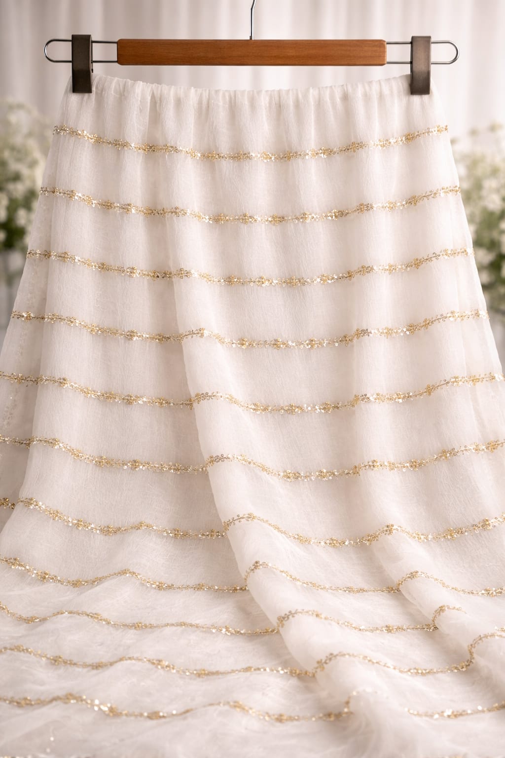 PURE CRINKLE CHIFFON – ROYAL GOLDEN LINEAR FLORAL DESIGN (DYEABLE)
