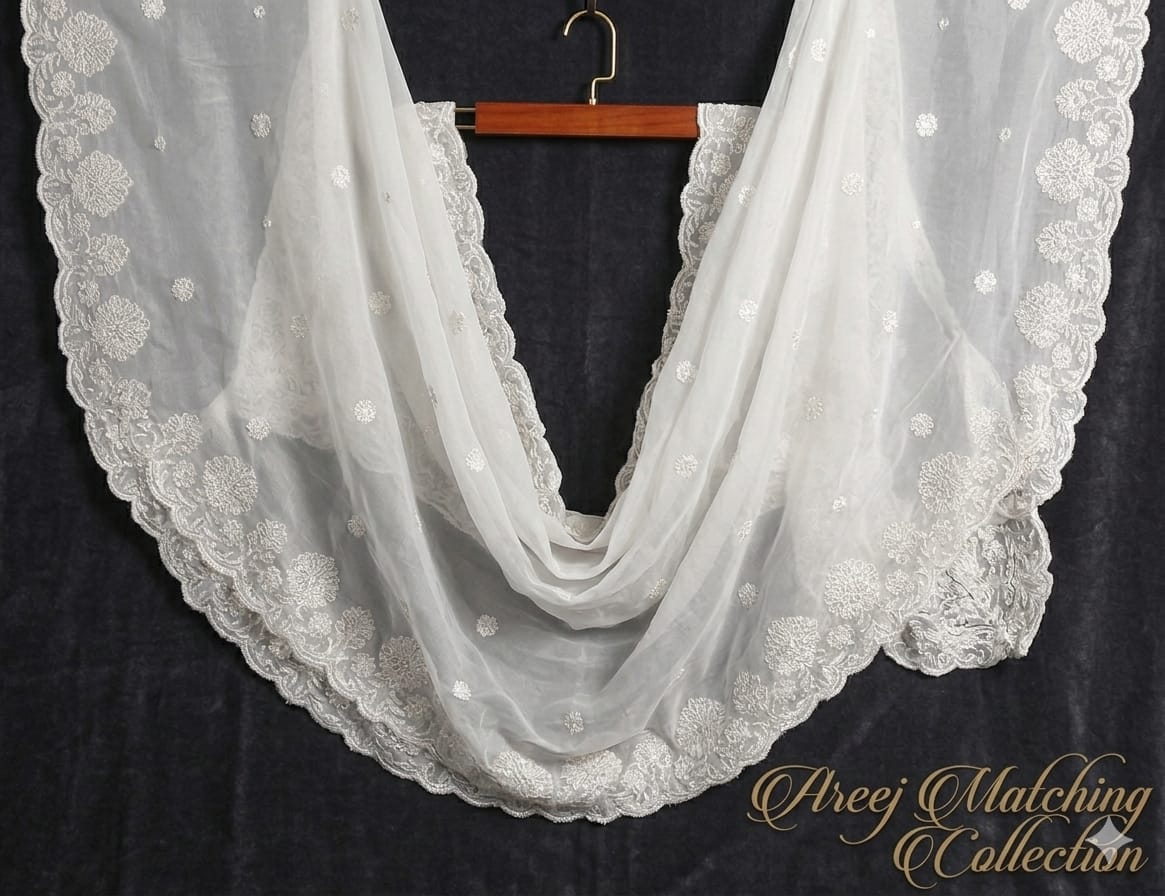 PURE CRINKLE CHIFFON BORDER DUPATTA – SOPHISTICATED SILVER WORK (DYEABLE)